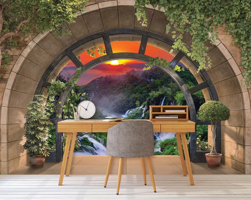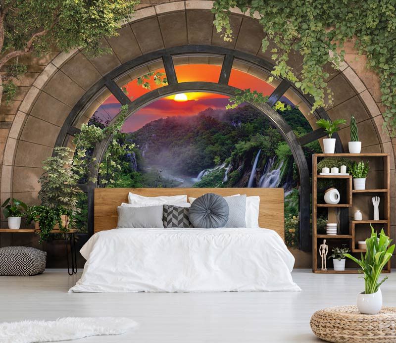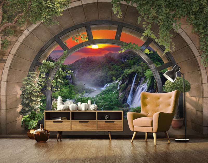 Schaffen Sie eine ruhige und natürliche Atmosphäre mit dieser atemberaubenden 3D-Fototapete von Wasserfällen. Sie ist ideal für eine entspannende Umgebung wie das Schlafzimmer oder das Wohnzimmer.
