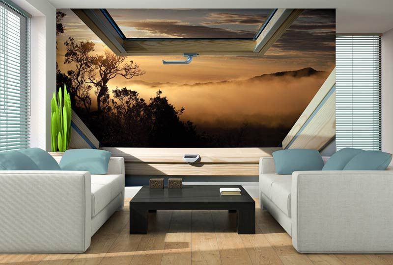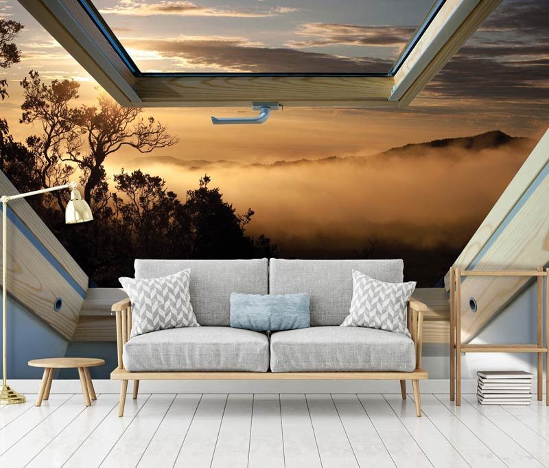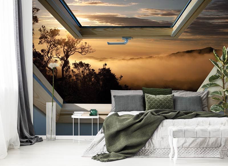 3D Fototapete Dachfensteransicht des Waldes