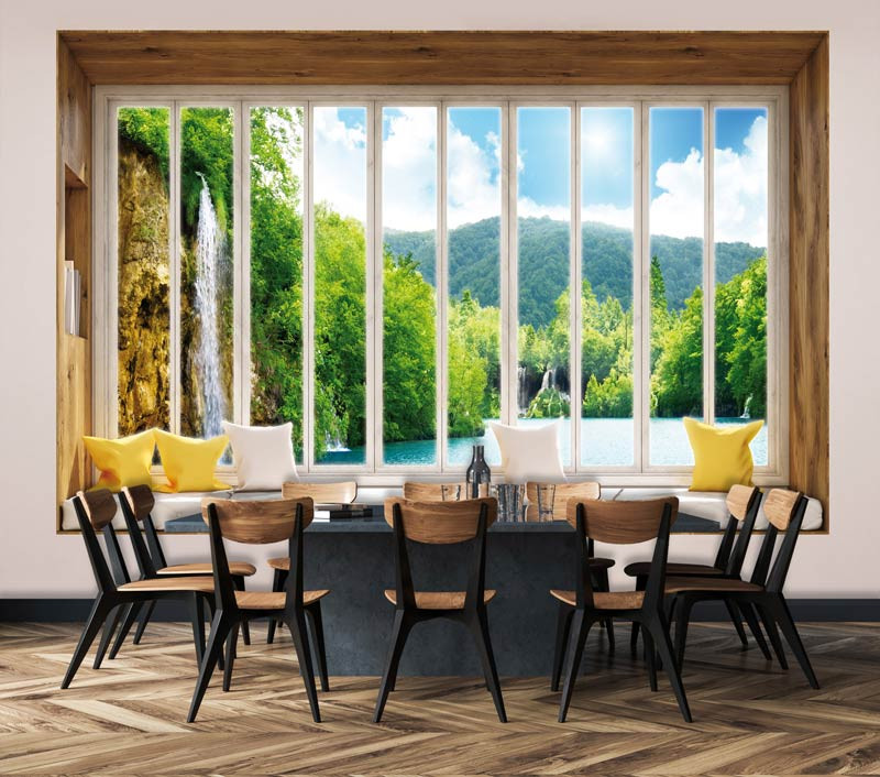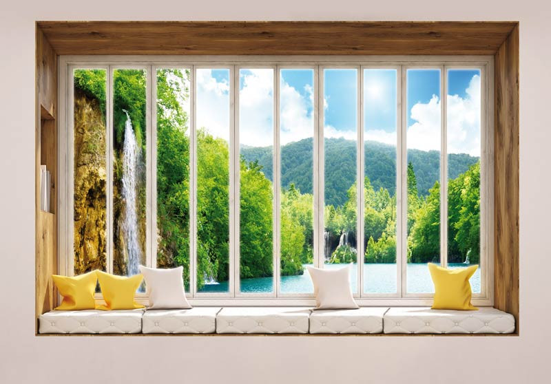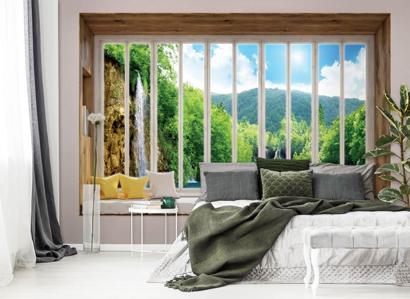3D Fototapete Fensteransicht des Wasserfalls
