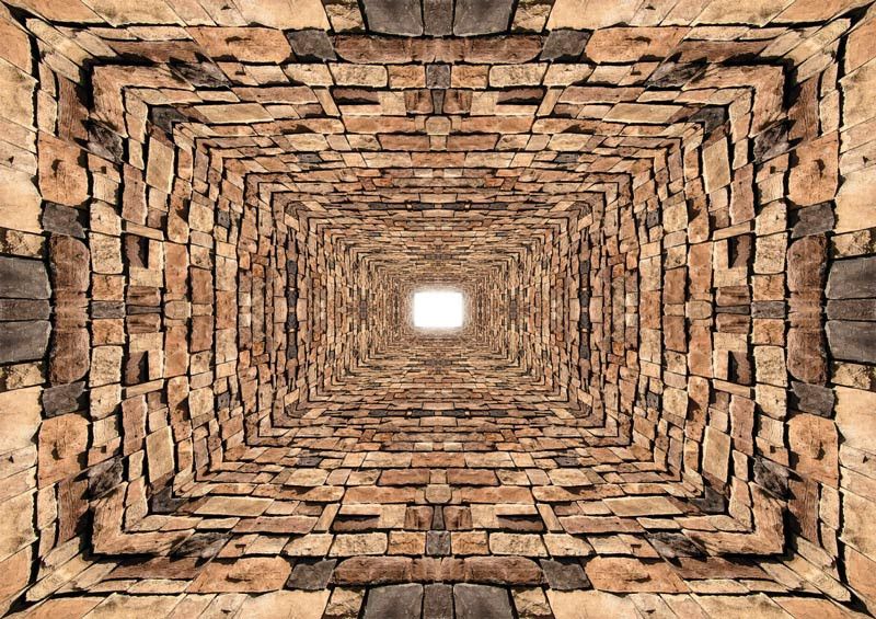 3D Fototapete eines Steintunnels, der sich in die Unendlichkeit zu erstrecken scheint.