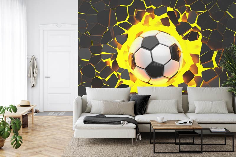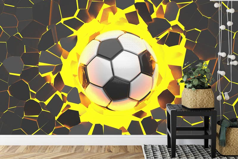 Verleihen Sie dem Kinderzimmer eine neue Dimension von Spaß und Fantasie mit unserer bezaubernden 3D-Fußball-Fototapete. Lassen Sie Ihr Kind in die Welt des Fußballs eintauchen, denn ein realistischer 3D-Fußball scheint in die Wand eingelassen zu sein und sorgt für einen interaktiven und lebendigen Look.