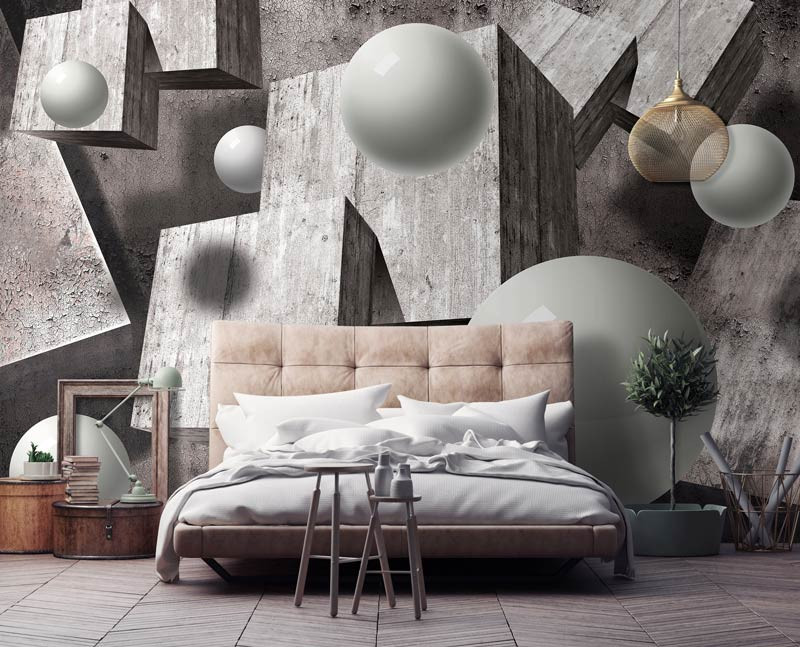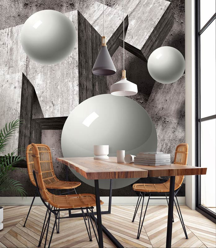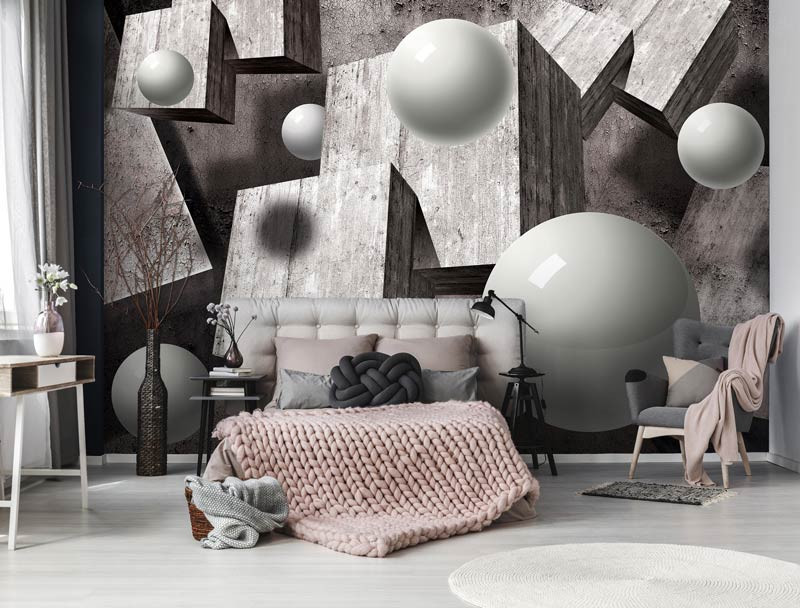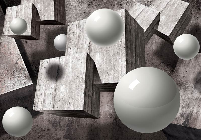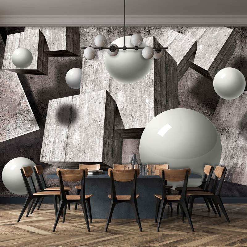 Vlies-Fototapete mit verschiedenen Formen, gerendert in einem 3D-Look.