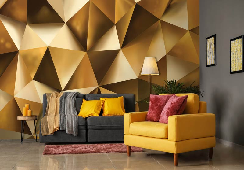 Vlies Fototapete von abstrakten goldenen geometrischen Formen.