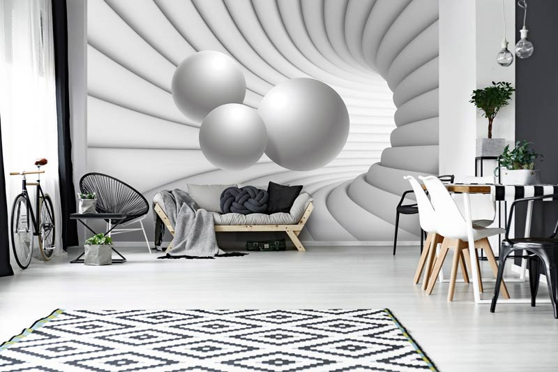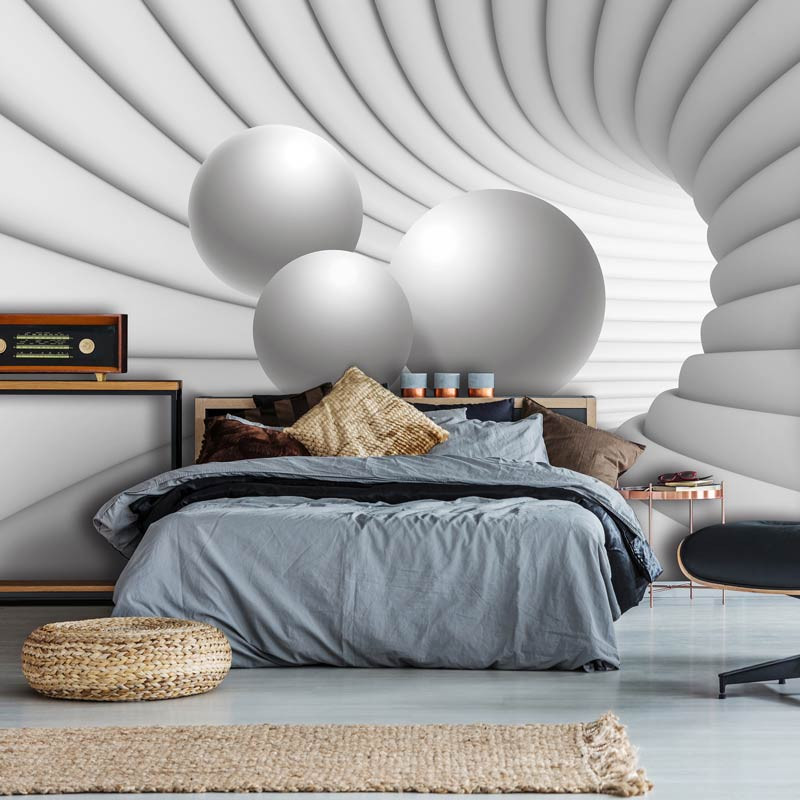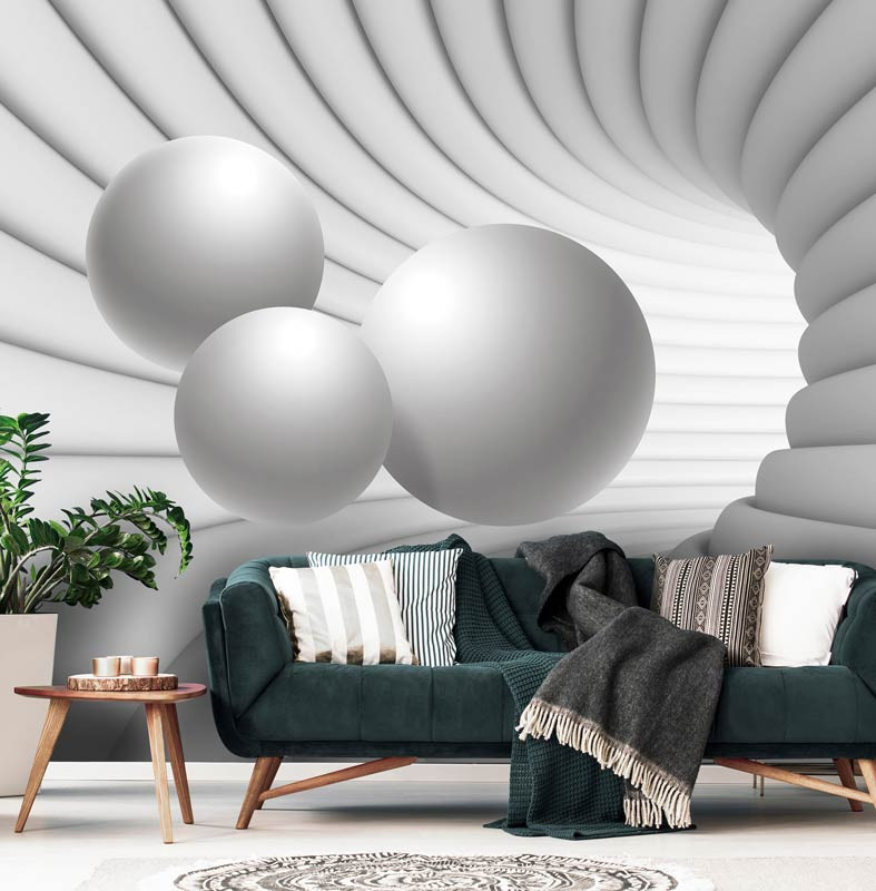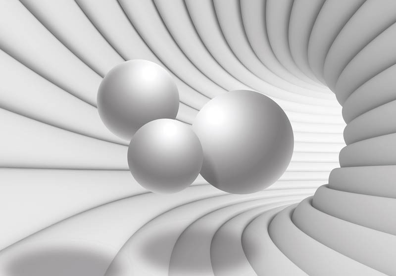 Vlies Fototapete eines 3D-Tunnels mit 3 großen Kugeln.