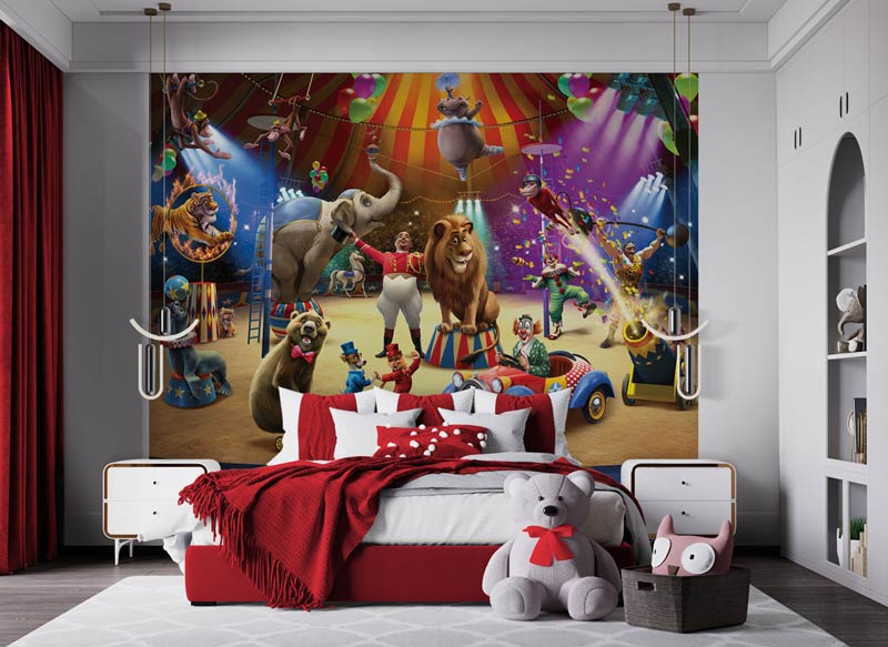 Eine wunderschöne Zirkusszene ist eine wirklich einzigartige und unterhaltsame Möglichkeit, das Zimmer Ihres Kindes in einen fröhlichen Raum zu verwandeln!