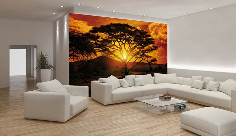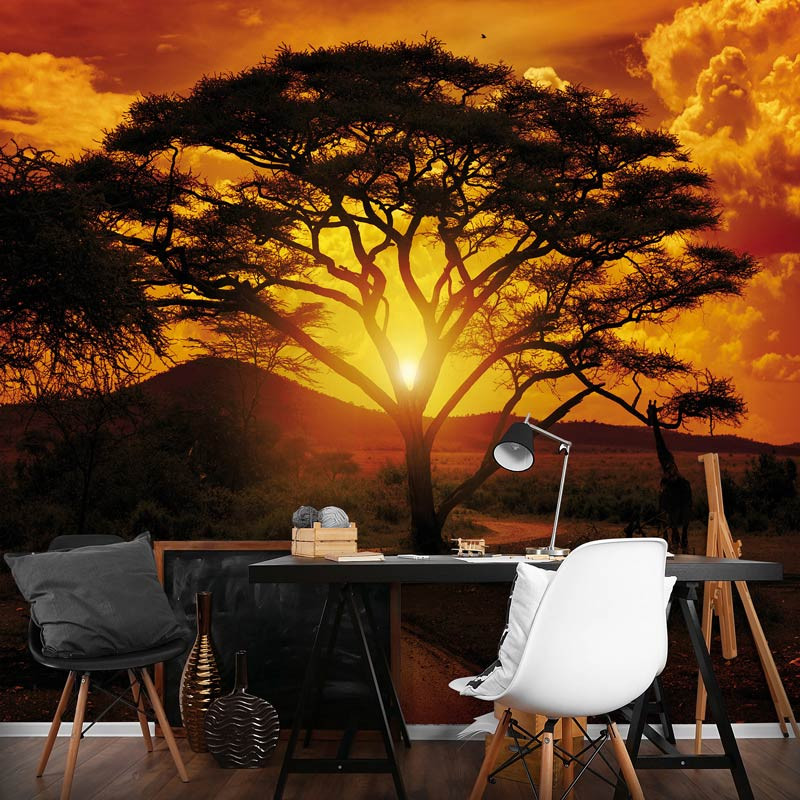 Vlies Fototapete von einem schönen Sonnenuntergang in Afrika. Sieht toll aus im: Schlafzimmer, Wohnzimmer, Flur, Büro oder jedem anderen Raum.
