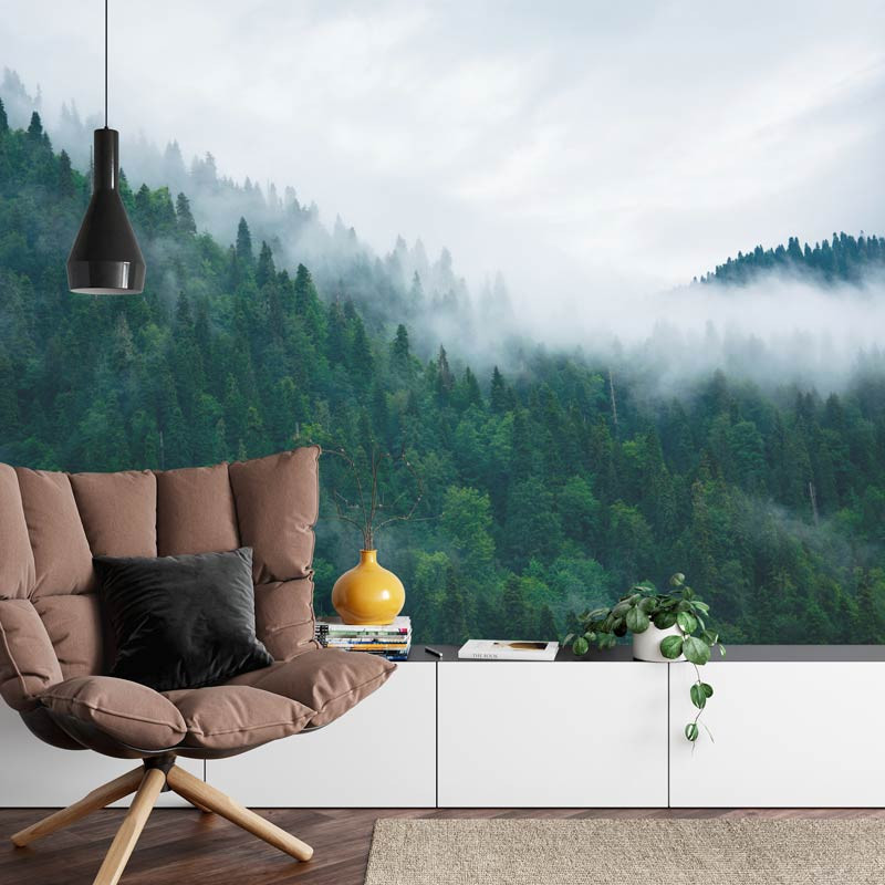 Genießen Sie mit unserer individuellen Fototapete Berggipfel im Nebel die heitere Pracht von in Nebel gehüllten Berggipfeln. Dieses atemberaubende Design bringt die majestätische Schönheit der Berge im Nebel direkt in Ihr Interieur und verleiht jedem Raum einen Hauch von natürlicher Gelassenheit.