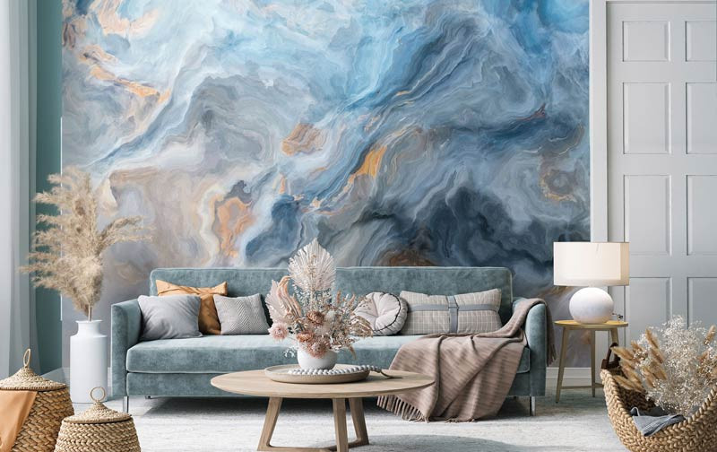 Die blaue Marmortapete ist ein echter Blickfang und schafft einen luxuriösen Look im Wohnzimmer, Schlafzimmer oder jedem anderen Raum.