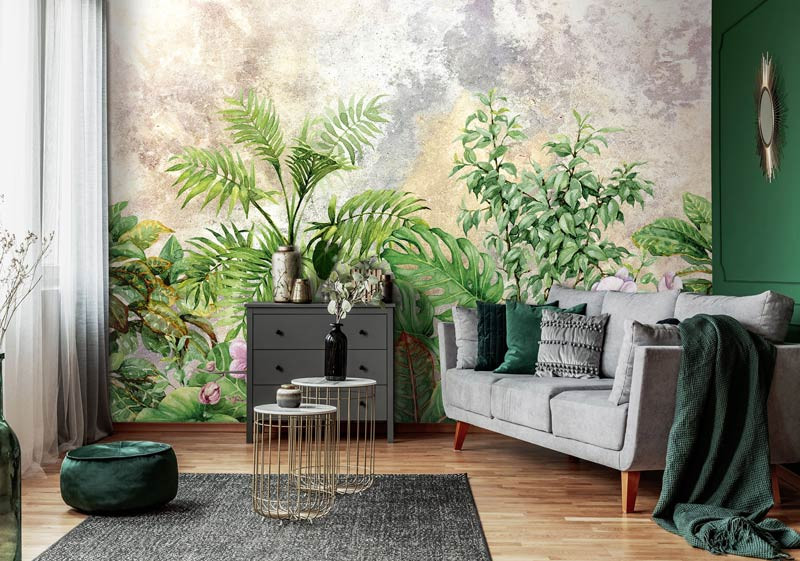Die exotische, botanische, Pflanzen und Blätter Fototapete ist die perfekte Ergänzung für den Dschungel Zimmer und jeden anderen Raum.