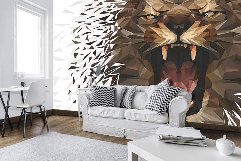 Die Fototapete mit diesem Löwen ist ein echter Blickfang im: Wohnzimmer, Schlafzimmer, Hobbyraum, Küche, Flur, Büro oder jedem anderen Raum.