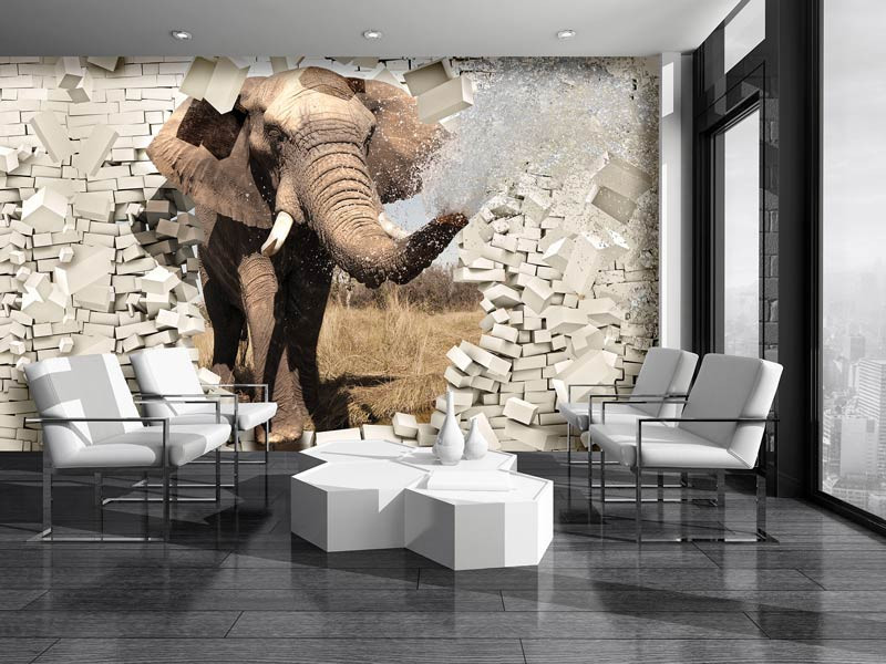 Fototapete Elefant durch die Wand 3D