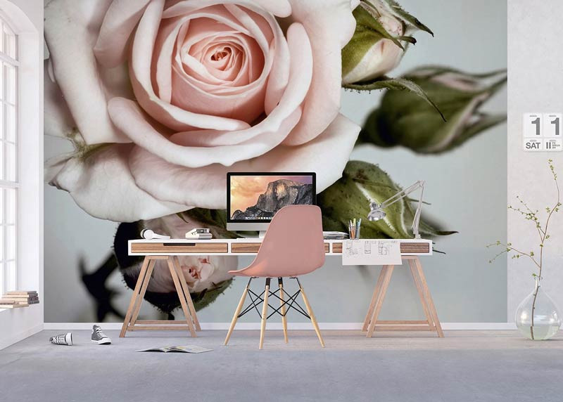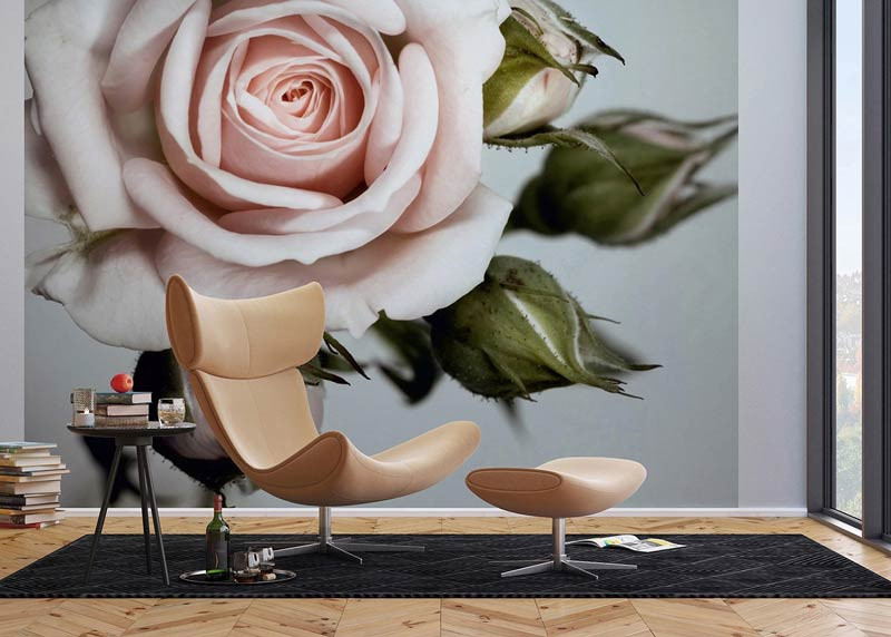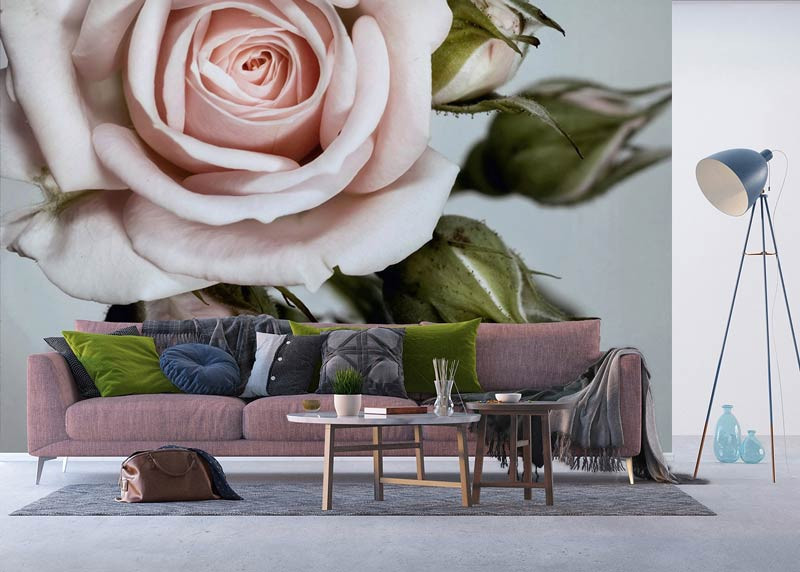 Genießen Sie die klassische Schönheit einer eleganten Rose. Diese Fototapete zeigt eine Rose in sanften, romantischen Tönen wie Altrosa und Creme, mit außergewöhnlicher Schärfe und Tiefe.