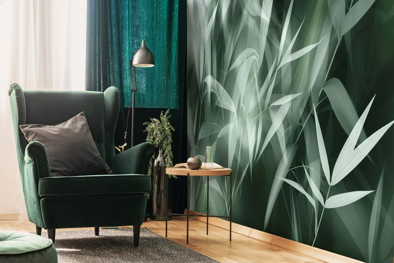 Breng oosterse elegantie en rust in huis met dit fotobehang van artistiek vormgegeven bamboebladeren. De lichte transparantie en zachte gelaagdheid creëren een gevoel van beweging en verfijning.