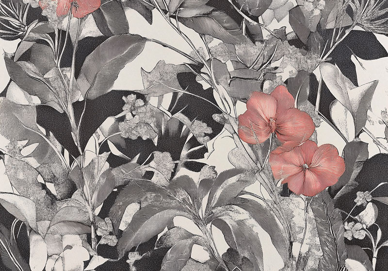 Geef je interieur een kunstzinnige en verfijnde uitstraling met dit prachtige fotobehang. Het ontwerp toont een gedetailleerde botanische tekening in zwart-wit, gecombineerd met subtiele roze bloemen die zorgen voor een zacht kleuraccent. De fijne lijnen en elegante compositie maken dit behang perfect voor een stijlvolle woonkamer, slaapkamer of kantoor waar je een tijdloos en uniek statement wilt maken.