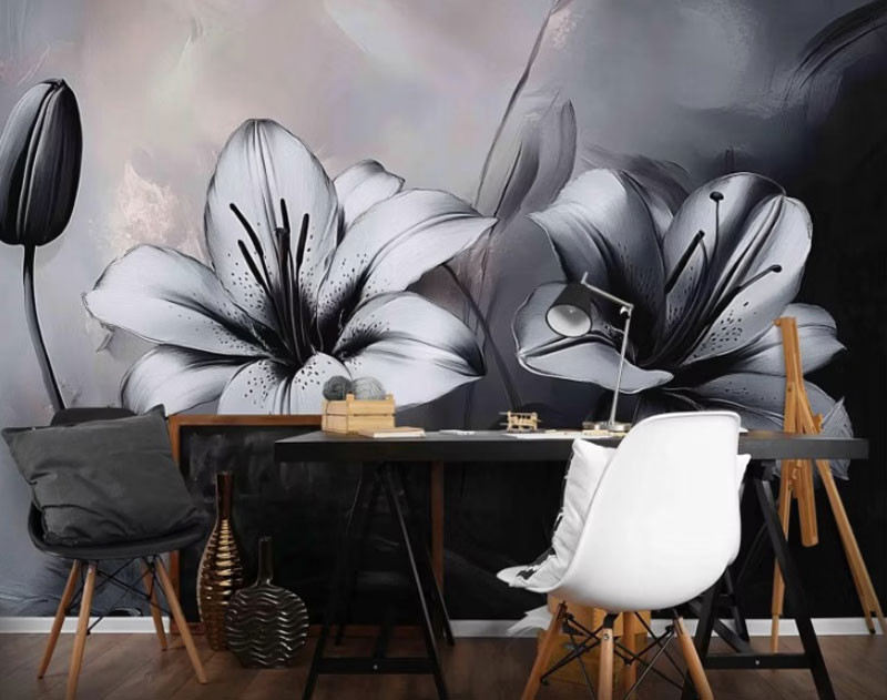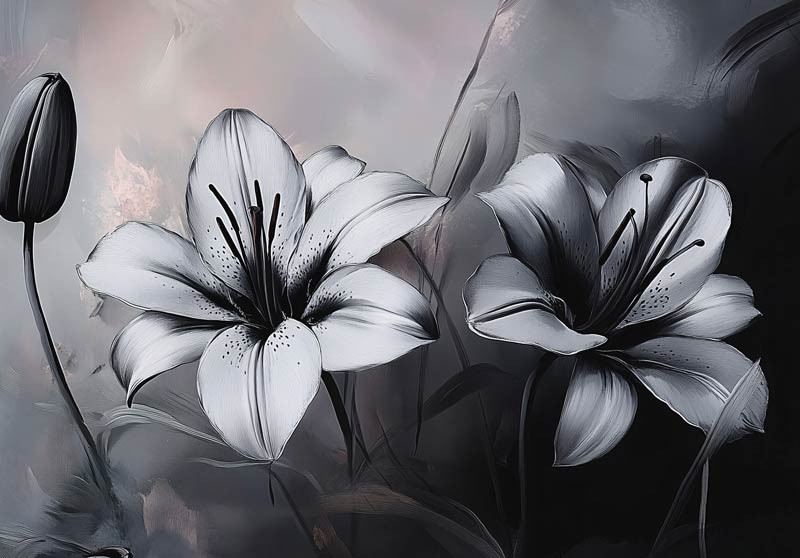 Voeg een vleugje luxe en elegantie toe aan je interieur met het fotobehang luxe lelies. Dit indrukwekkende ontwerp toont grote lelies met verfijnde details, afstekend tegen een donkere, artistieke achtergrond. De krachtige contrasten en diepe kleurtinten geven het geheel een stijlvol en exclusief karakter.