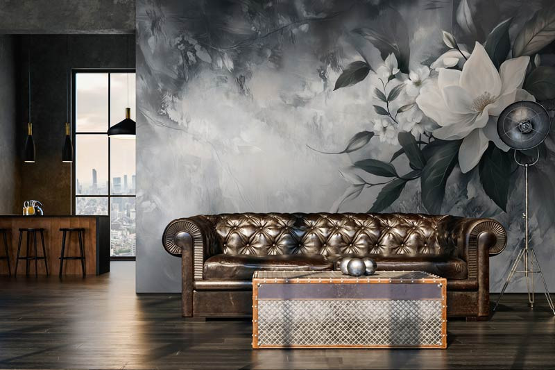 Fotobehang Tijdloze Witte Bloem in Moderne Compositie