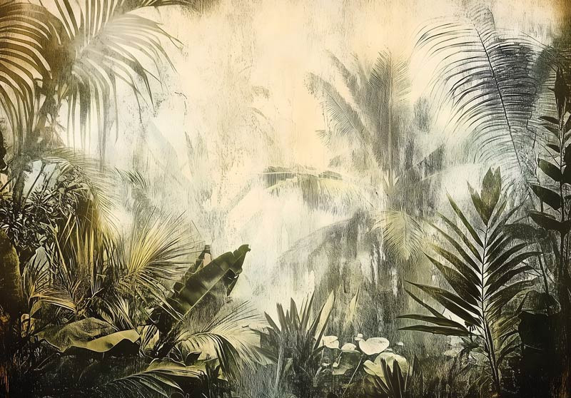 Een mysterieus tropisch woud strekt zich uit over je muur met dit fotobehang. De diepte, gelaagdheid en het lichtspel tussen de bladeren geven het gevoel alsof je zelf midden in de jungle staat.