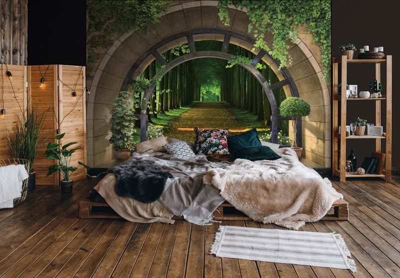 Die Fototapete ist auf Vlies- und Vinyltapeten erhältlich und kann in individuellen Größen bestellt werden. Sie wird in Bahnen von bis zu 104 cm Breite geliefert, mit messerscharfen Drucken, die die Schönheit des Waldes im Detail zeigen.