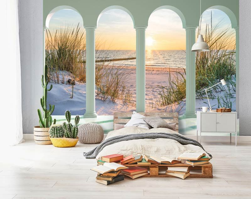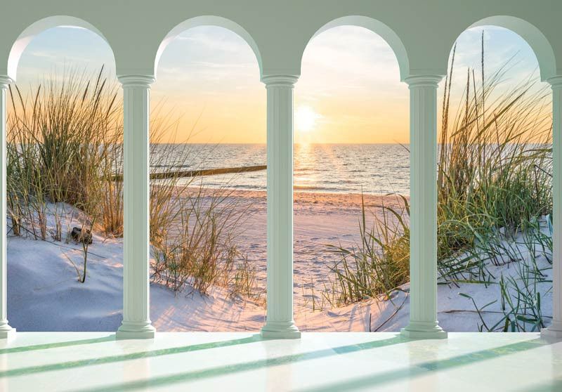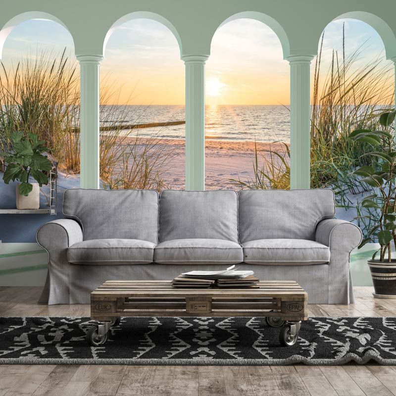 Fototapete 3D-Ansicht von Dünen, Strand und Meer