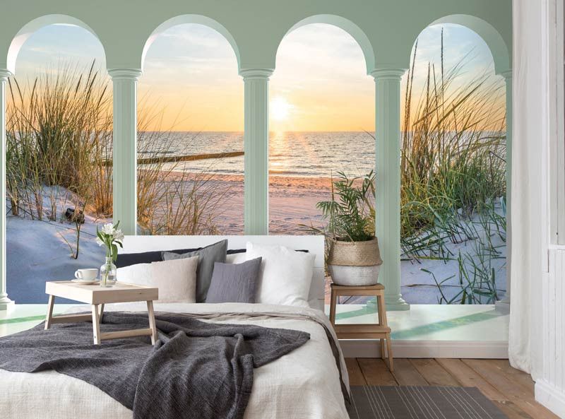 Genießen Sie atemberaubende Aussichten mit unserer Fototapete 3D-Ansicht von Dünen, Strand und Meer. Diese atemberaubende Fototapete lässt Sie in eine Panoramalandschaft aus Dünen, Strand und Meer eintauchen und schafft in jedem Raum ein Gefühl von Frieden und Freiheit. Perfekt für Liebhaber der Küste und des Strandurlaubs, ideal für das Wohnzimmer, Schlafzimmer oder Arbeitszimmer.