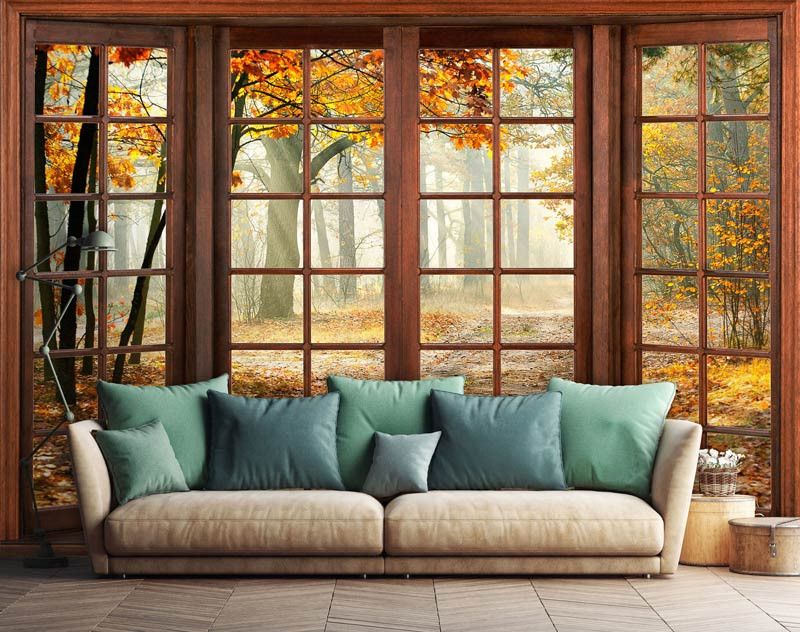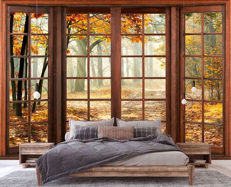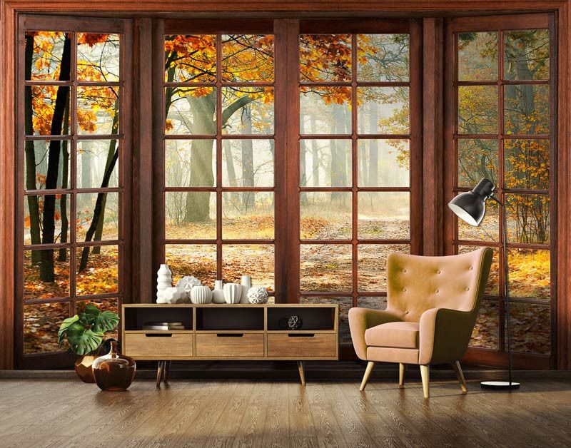 Genießen Sie den Blick auf einen beruhigenden Wald mit dieser 3D-Fototapete. Es sieht so aus, als würden Sie durch ein Fenster auf eine wunderschöne Waldlandschaft schauen, die jedem Raum eine beruhigende Atmosphäre verleiht. Perfekt für das Wohnzimmer, das Schlafzimmer oder sogar für das Büro zu Hause.