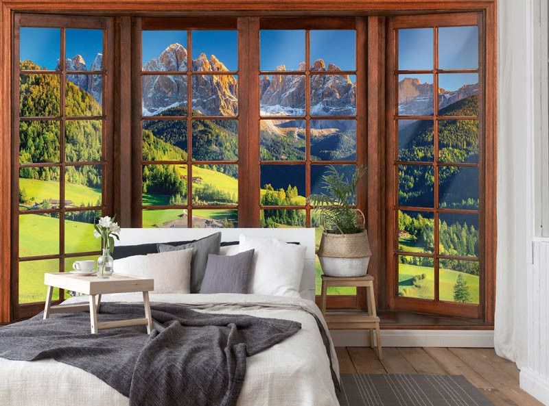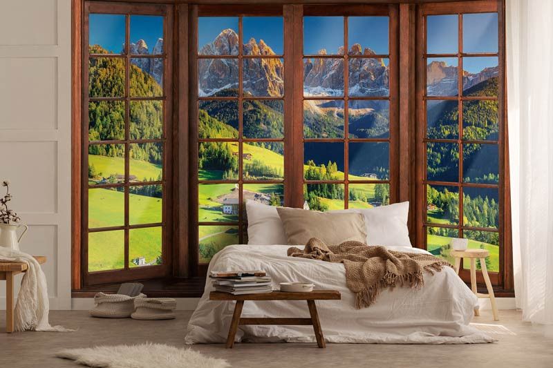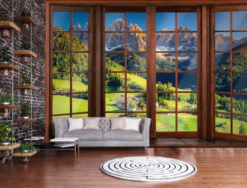 Fototapete 3D-Fensteransicht der Alpen