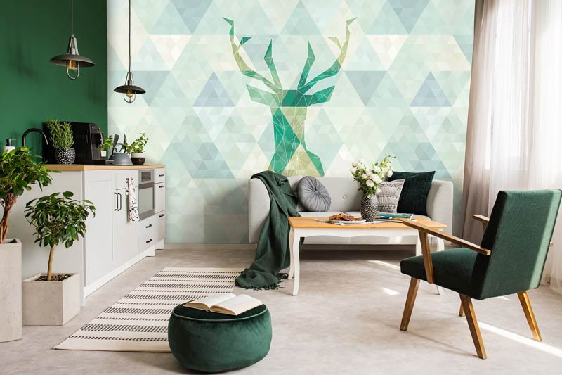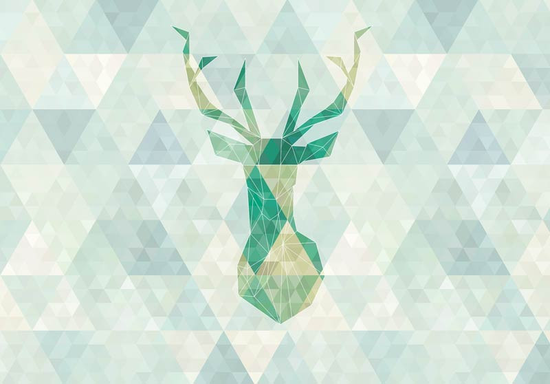 Fototapete eines geometrischen, abstrakten Kunstwerks mit einem schönen Reh.