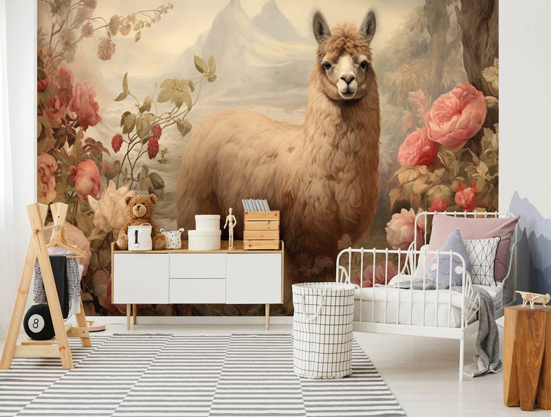 Mit unseren individuellen Fototapeten können Sie jede Wand in ein wahres Kunstwerk verwandeln. Die hochwertigen Drucke und strapazierfähigen Materialien sorgen für eine langlebige und lebendige Wanddekoration. Lassen Sie sich mit dieser charmanten Fototapete von der schönen Welt der Alpakas und Blumen inspirieren.