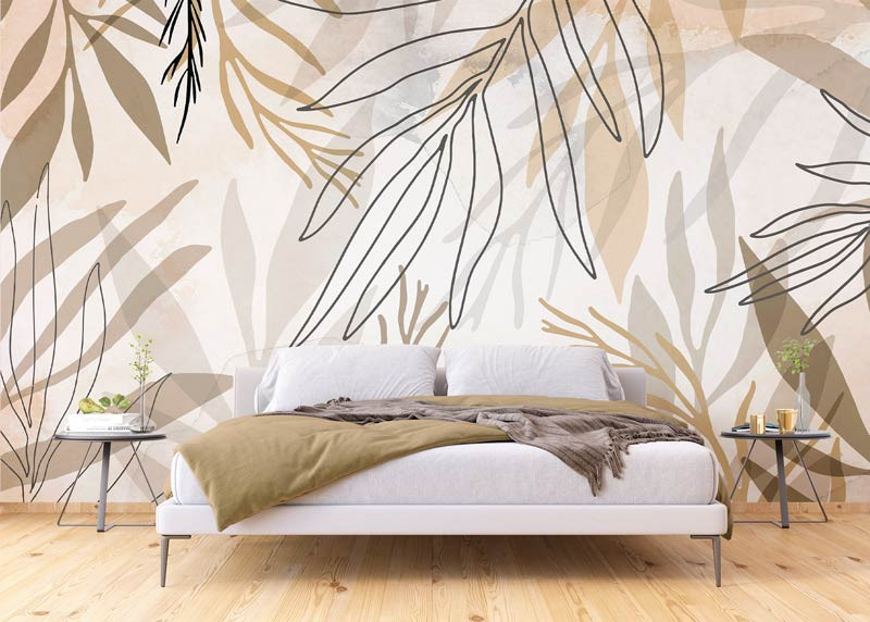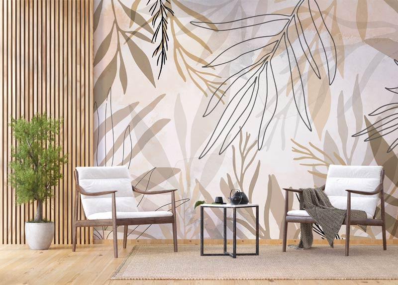 Verleihen Sie Ihrem Interieur einen kreativen und stilvollen Look mit der Fototapete Artistic Leaves. Die verspielten Linien, einzigartigen Formen und kräftigen Farbkombinationen machen diese Tapete zu einem echten Blickfang. Dieses Design verleiht jedem Raum einen künstlerischen und modernen Touch.