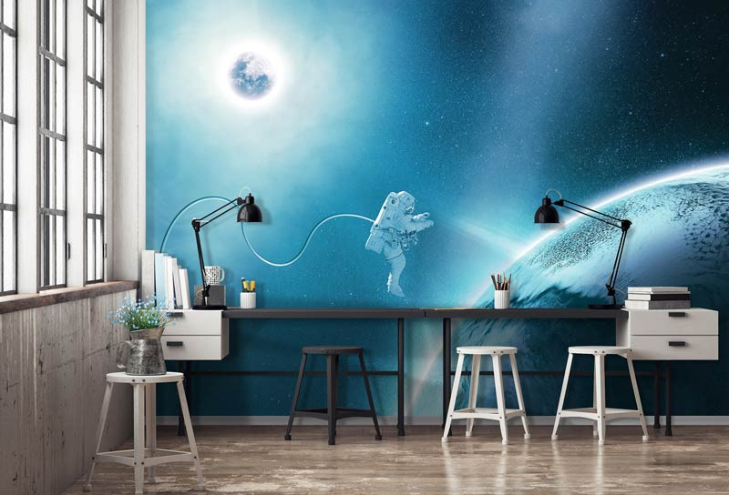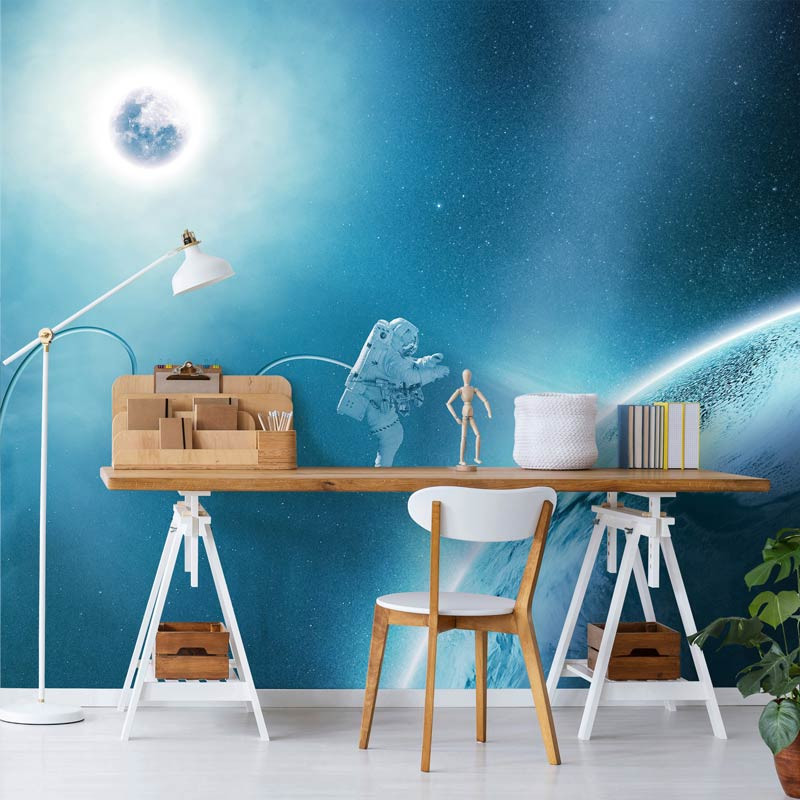 Mit der Fototapete Astronaut auf dem Mond holen Sie sich die Magie des Universums direkt in Ihr Zuhause. Das detaillierte Bild des Astronauten, der durch den Weltraum schwebt, und der wunderschöne Mond im Hintergrund werden Sie jedes Mal verzaubern, wenn Sie es betrachten.