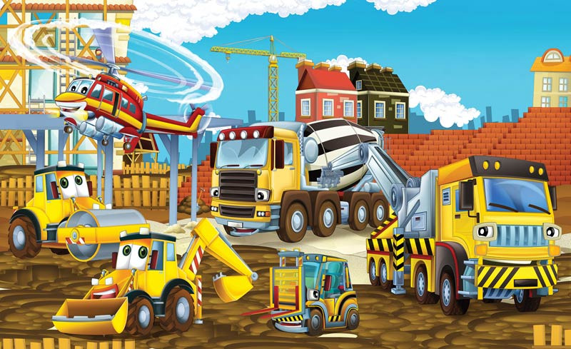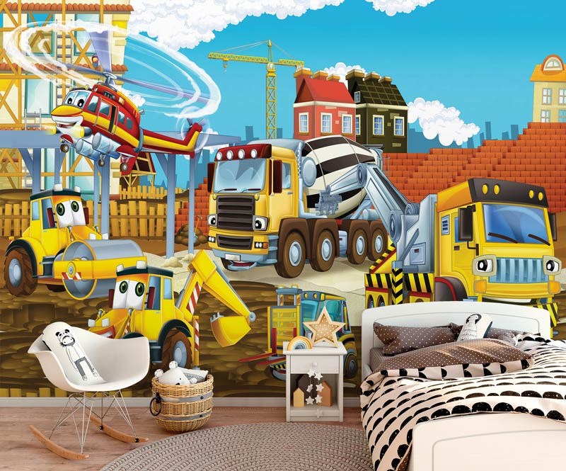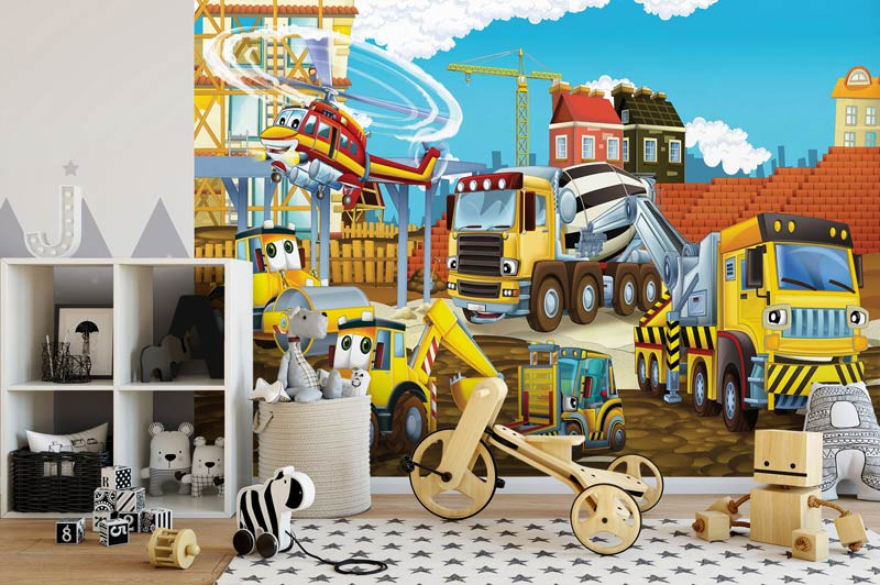 Ein Kind, das es liebt, mit Baggern und Lastwagen zu spielen, wird von dieser schönen Fototapete beeindruckt sein.