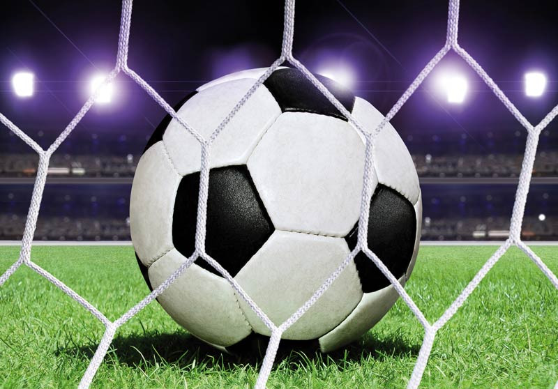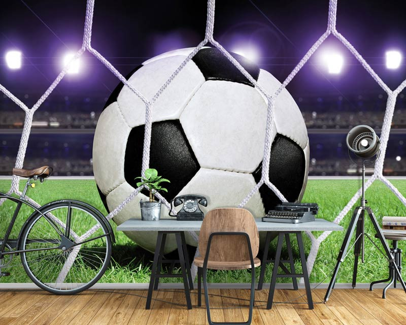 Wallpaper für die echten Fußballer. Ein Fußball, der im Tor des vollen Stadions liegt!