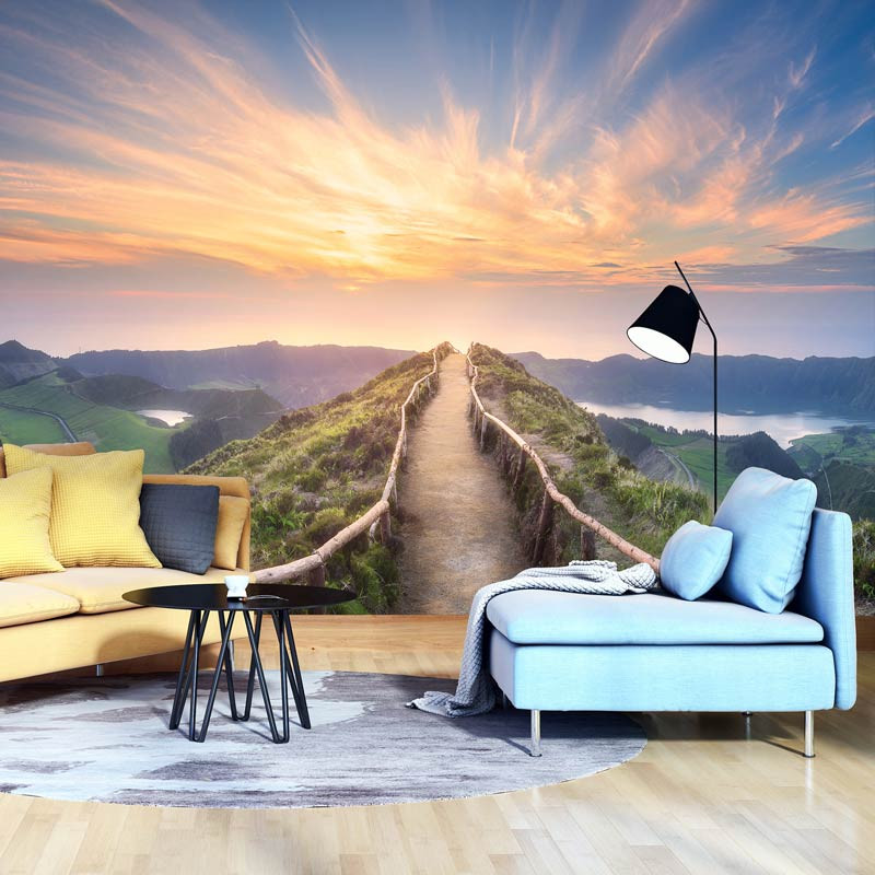 Bergpfad Fototapete ist ein echter Blickfang im: Wohnzimmer, Schlafzimmer, Hobbyraum, Küche, Flur, Büro oder jedem anderen Raum.