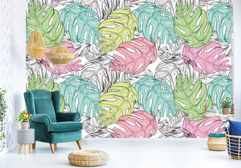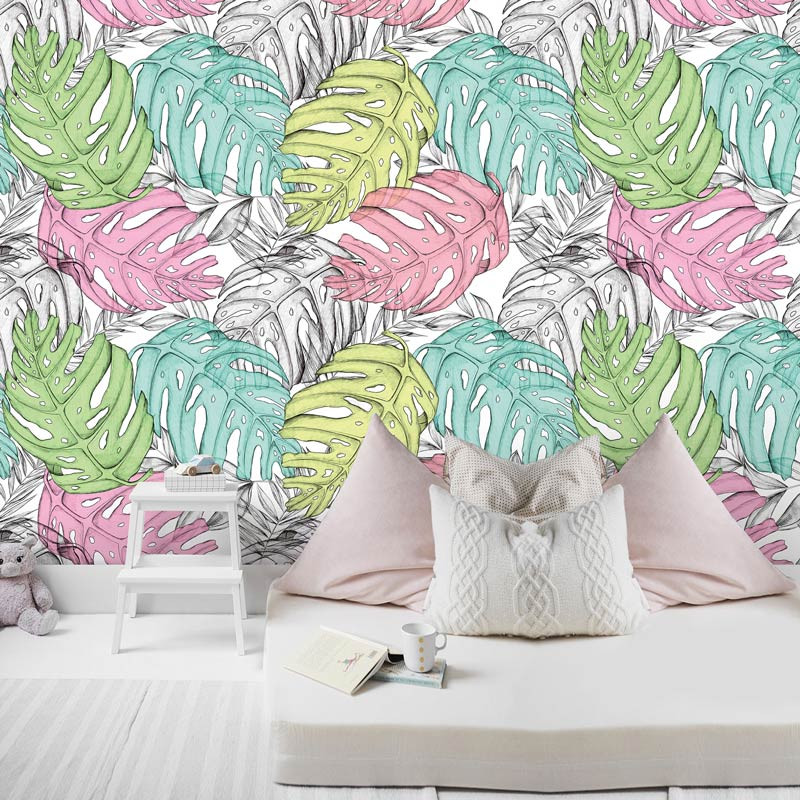 Fototapete mit pastellfarbenen Blättern ist die perfekte Ergänzung für jeden Raum.