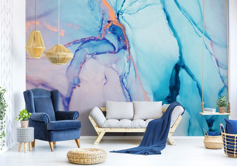 Die blaue Marmor-Fototapete ist die perfekte Ergänzung für jeden Raum.
