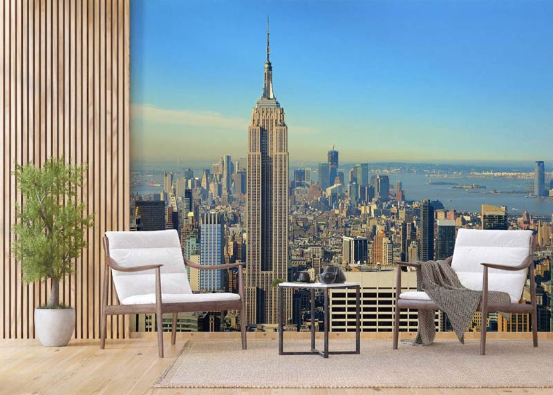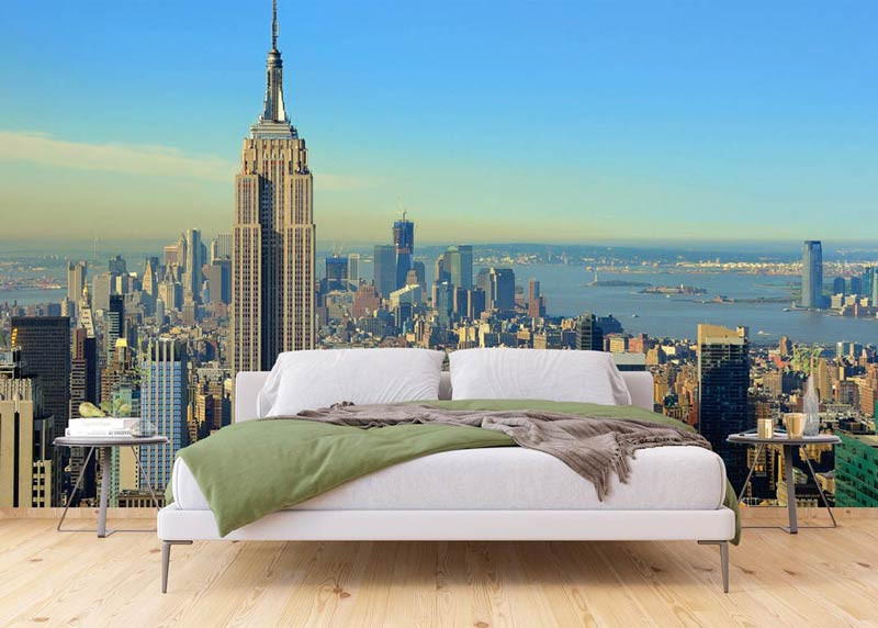 Genießen Sie den Panoramablick auf Manhattan mit dieser beeindruckenden Fototapete. Die Skyline und die Lichter der Stadt sind in leuchtenden Farben wiedergegeben und schaffen eine urbane und moderne Atmosphäre. Die hohe Qualität der Tapete sorgt für intensive Farben und eine detaillierte Darstellung der einzelnen Gebäude. Diese Tapete ist individuell gestaltbar und eignet sich ideal für Büros und moderne Wohnzimmer.