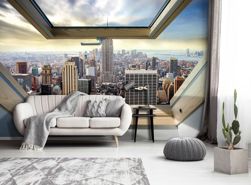 Fototapete Blick auf New York aus dem Fenster 3D.