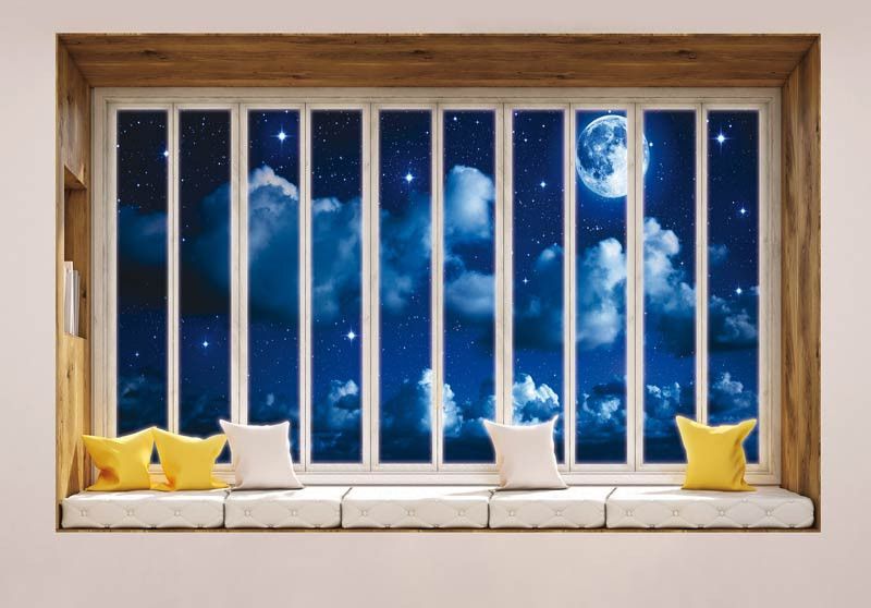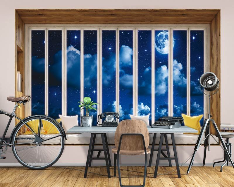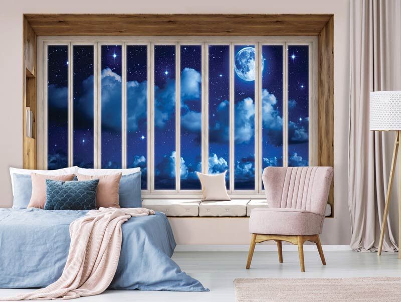 Fototapete Blick durch das Fenster bei Nacht 3D Perspektive.