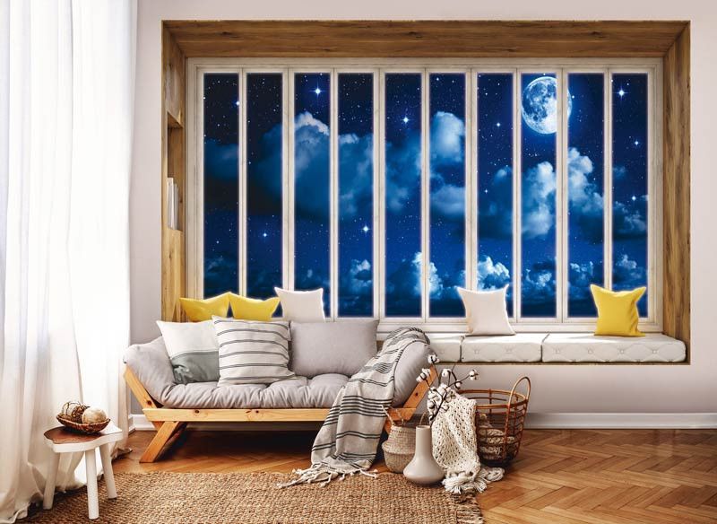Fototapete Blick durch das Fenster bei Nacht 3D-Perspektive