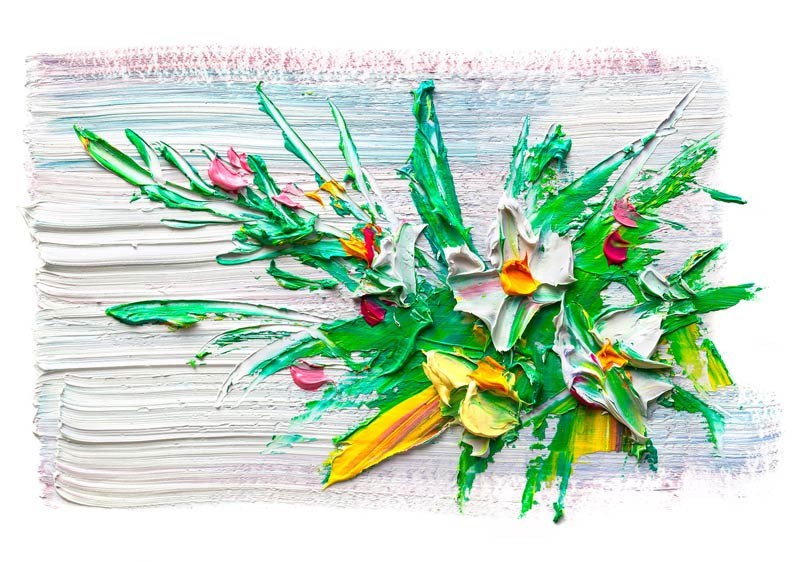 Vliestapete eines schönen, abstrakten Gemäldes, das eine Reihe von bunten Blumen darstellt.