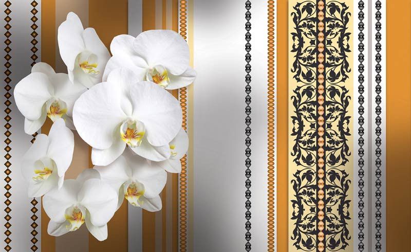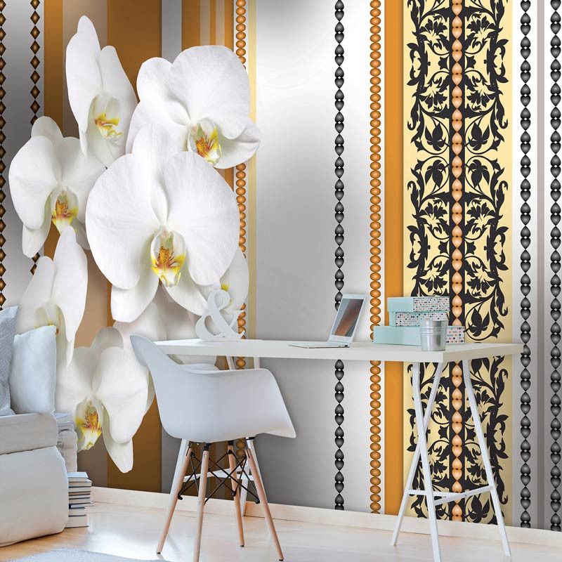 Vlies Fototapete von schönen Blumen auf einem schicken Muster.