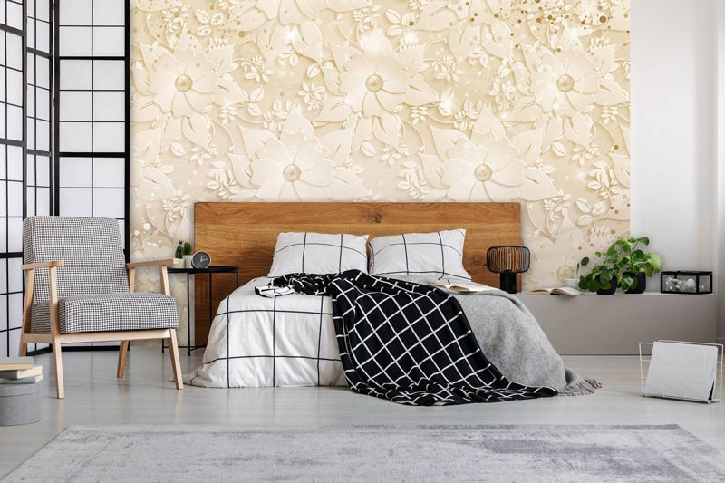 Fototapete mit floralem Muster.