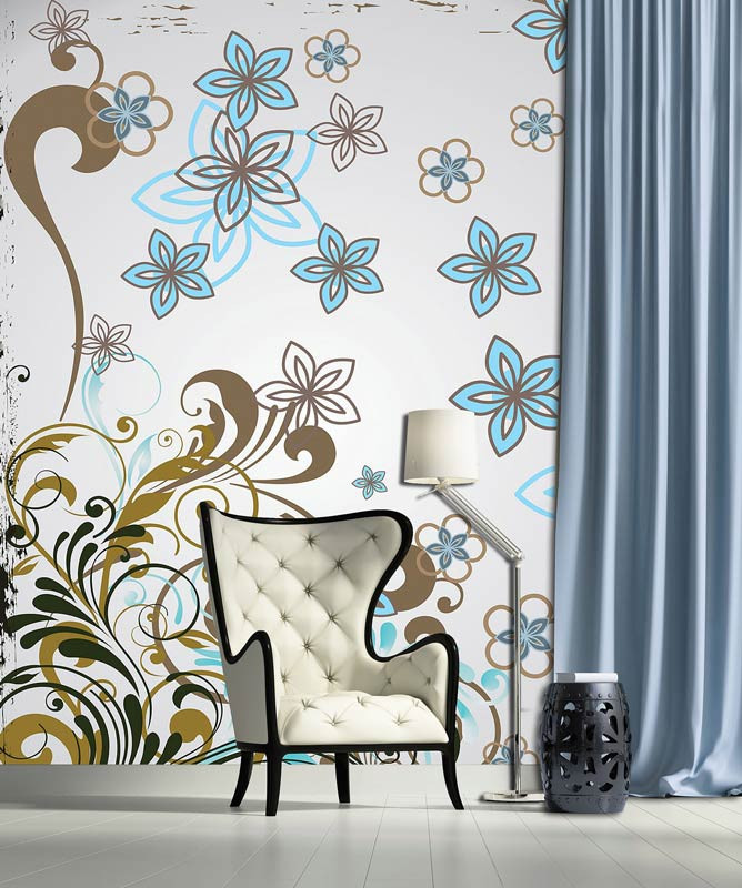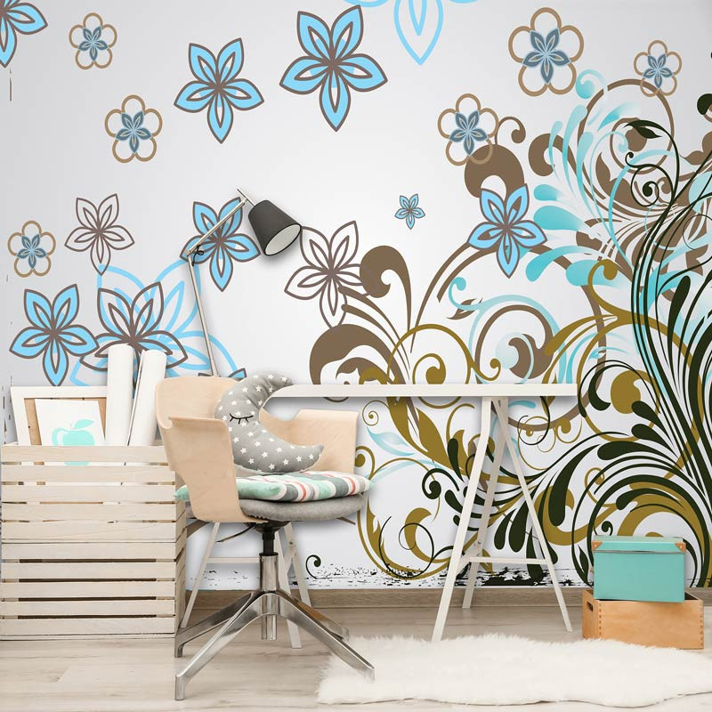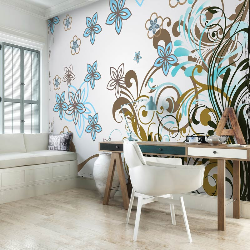 Vlies Fototapete mit schönem Blumenmuster. Komplett erhellt das: Schlafzimmer, Wohnzimmer, Flur, Büro oder jeden anderen Raum.