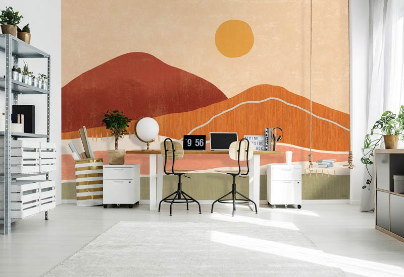 Schaffen Sie eine ruhige und natürliche Atmosphäre in Ihrem Interieur mit der Fototapete Boho Landscape. Die sanften Erdtöne und verträumten Konturen bringen die Gelassenheit der Natur ins Haus. Dieses Design ist perfekt für alle, die einen minimalistischen, aber warmen Bohčme-Stil lieben.