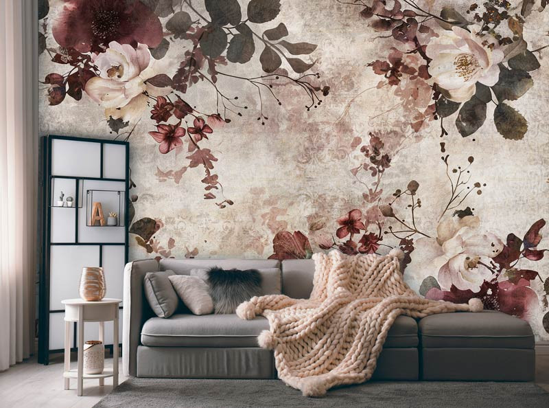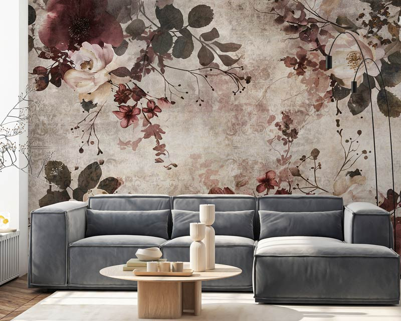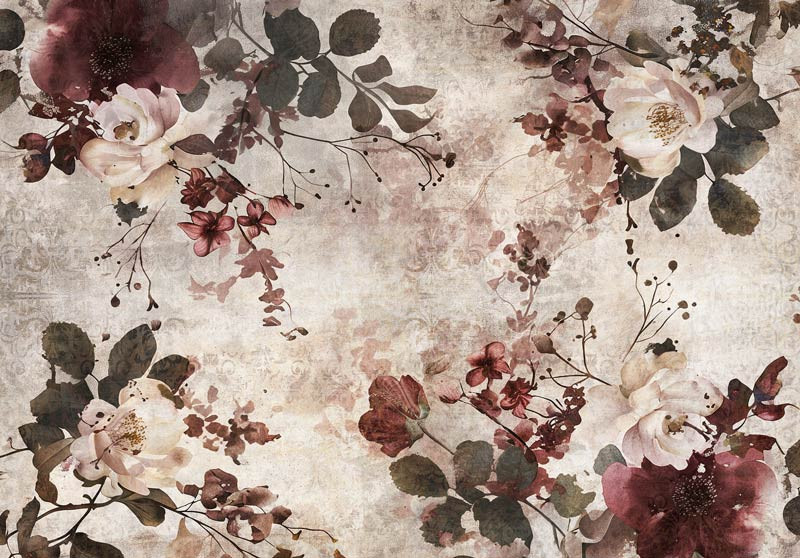 Bringen Sie eine stilvolle Kombination aus Natur und Kunst in Ihr Interieur mit unserer Fototapete Bordeauxrote Blumen auf Beton. Diese Fototapete zeigt wunderschöne bordeauxrote Blumen, die einen eleganten Kontrast zu einem robusten Betonhintergrund bilden. Das Design eignet sich perfekt für Wohnzimmer, Schlafzimmer oder Büro und verleiht jedem Raum einen Hauch von Raffinesse und Farbe.