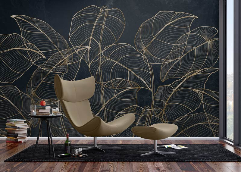 Fototapete Botanical Leaves mit goldenen Akzenten