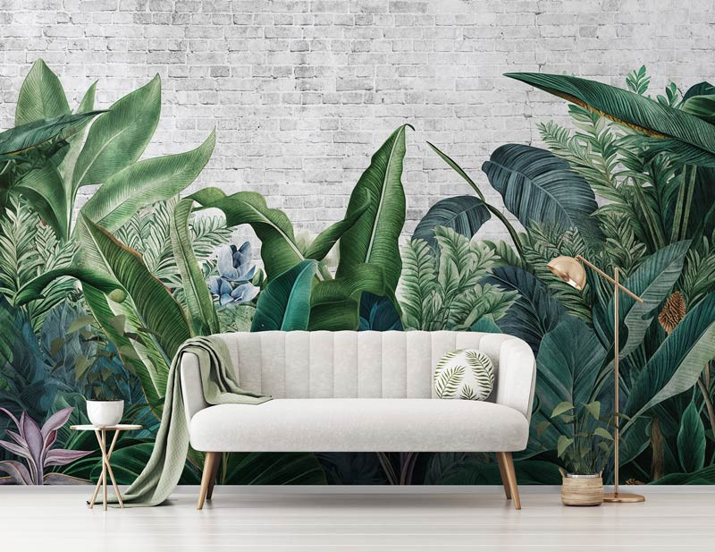 Bringen Sie die lebendige Energie eines tropischen Dschungels in Ihr Zuhause mit unserer Fototapete Botanical Jungle Plants Splendour. Dieses Design zeigt eine Fülle von exotischen Pflanzen auf dem Hintergrund einer weißen Steinwand. Perfekt, um eine beruhigende und erfrischende Atmosphäre in Ihrem Interieur zu schaffen. Ideal für das Wohnzimmer, Schlafzimmer oder sogar ein Büro.
