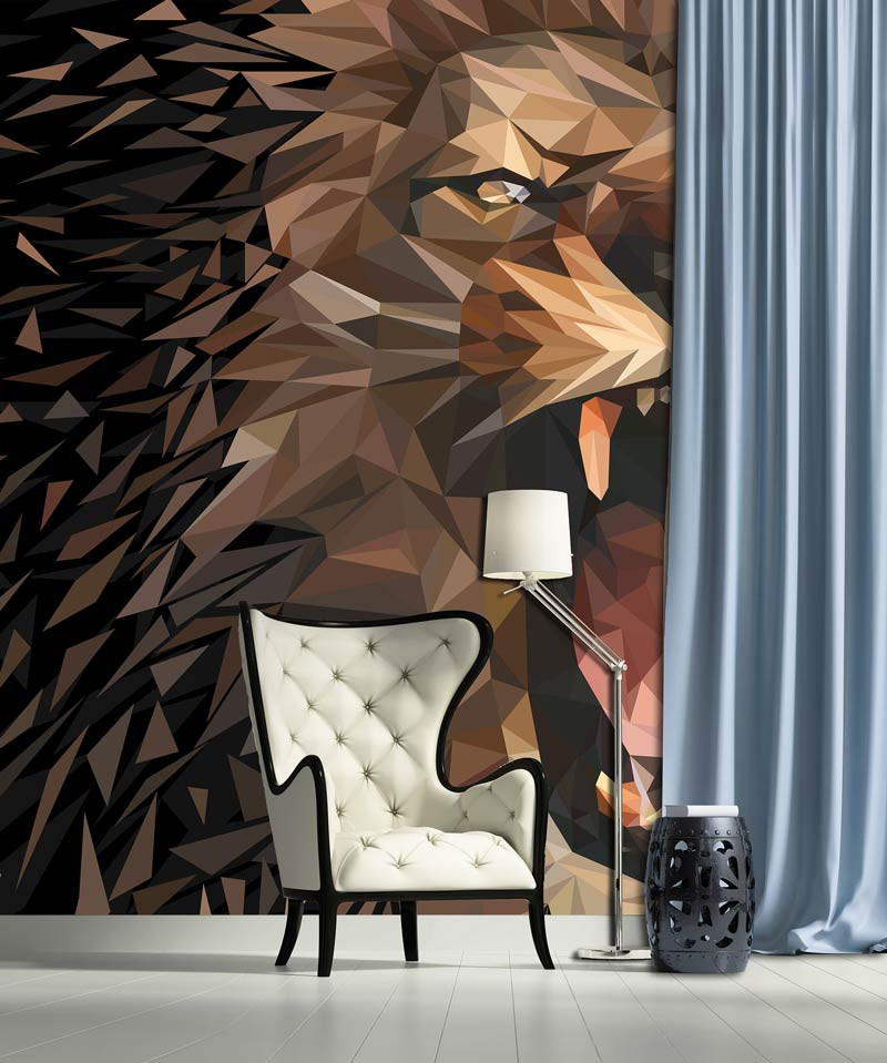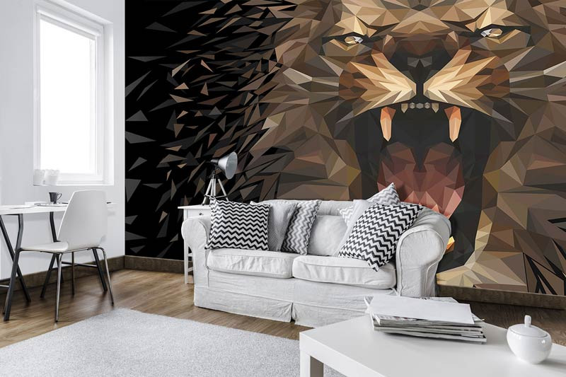 Die Fototapete mit diesem Löwen ist ein Blickfang im: Wohnzimmer, Schlafzimmer, Hobbyraum, Küche, Flur, Büro oder jedem anderen Raum.