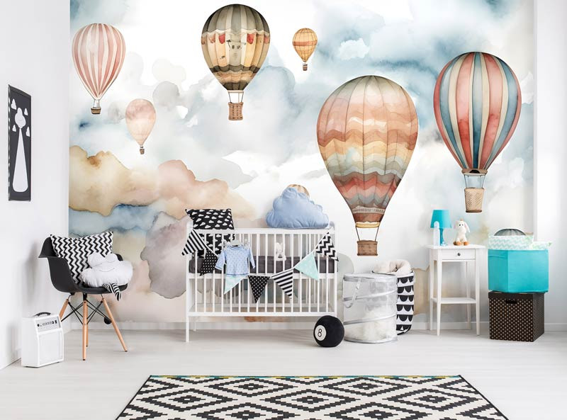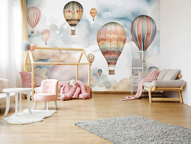 Mit unserer individuell gestalteten Fototapete können Sie die perfekte Größe wählen, sodass die bunten Heißluftballons den Raum ausfüllen und eine magische Atmosphäre schaffen. Lassen Sie Ihre Kinder eine Welt voller Farben und Freude in ihrem eigenen Zimmer genießen.