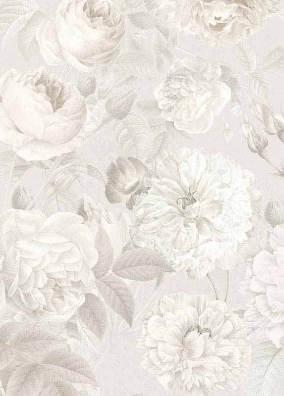 Die "Centifolia Muscosa", besser bekannt als Moosrose, ist eine echte Schönheit, deren Details auf der grau-weißen Fototapete besonders gut zur Geltung kommen.
